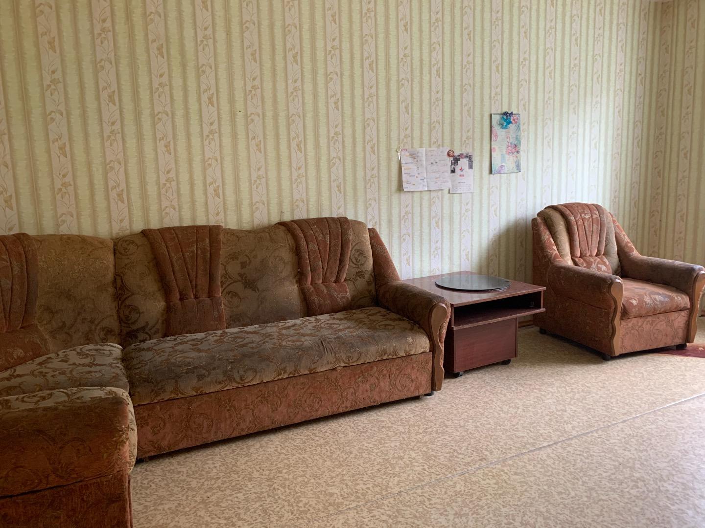 Мебели и техники нет. Есть только диван, два кресла, журнальный стол и комод.